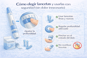 1) Qué son las lancetas (en simple) Las lancetas son agujas pequeñas que se usan con un lancetero para obtener una gota de sangre. Usarlas