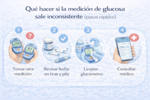 1) Medir con manos sucias o con residuos Qué pasa: si tienes azúcar, crema o comida en los dedos, puede alterar la lectura.Qué hacer: lava