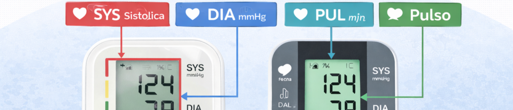 SYS es el primer número (el de arriba, normalmente). Es la presión cuando el corazón se contrae y empuja la sangre.