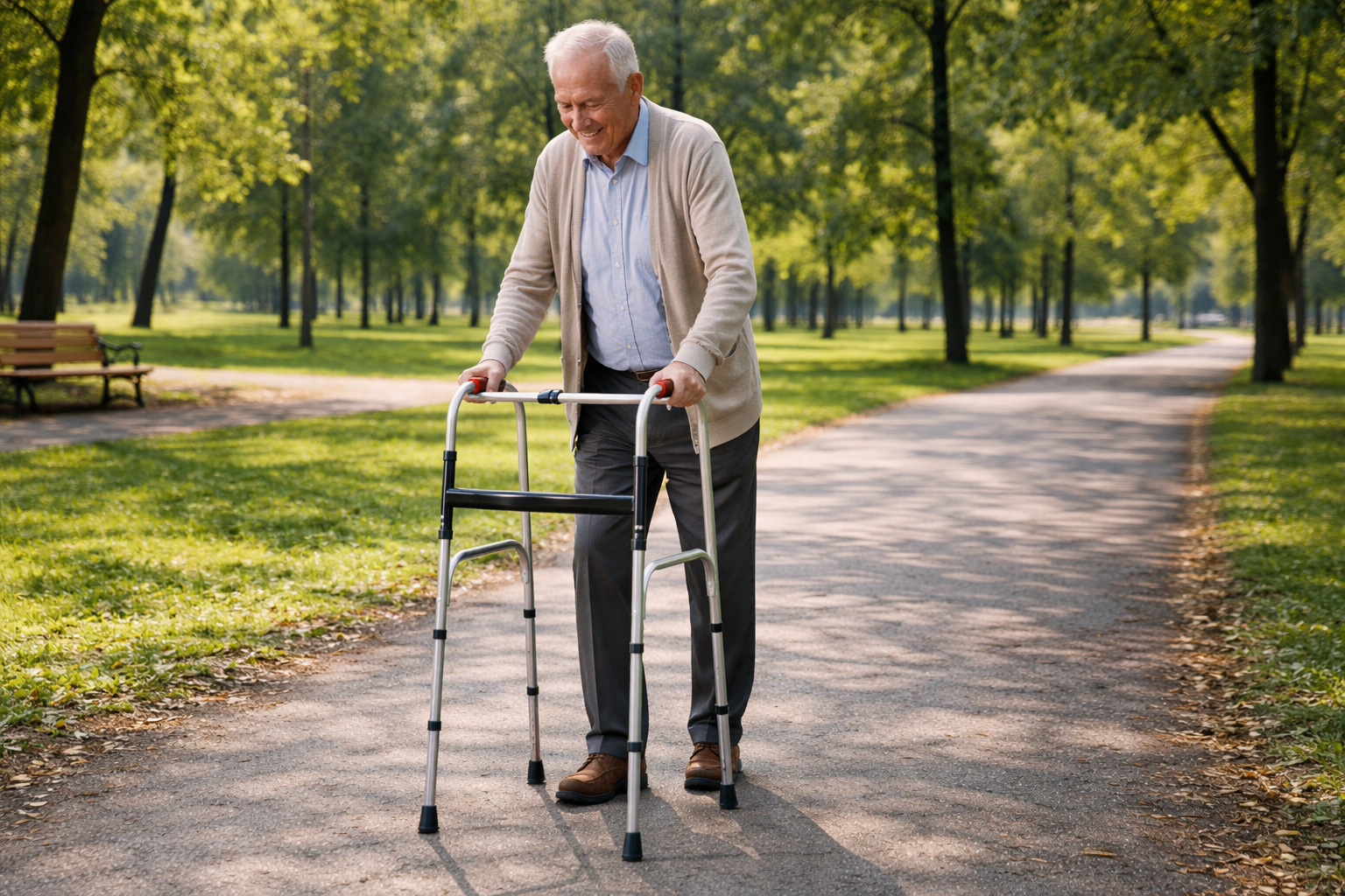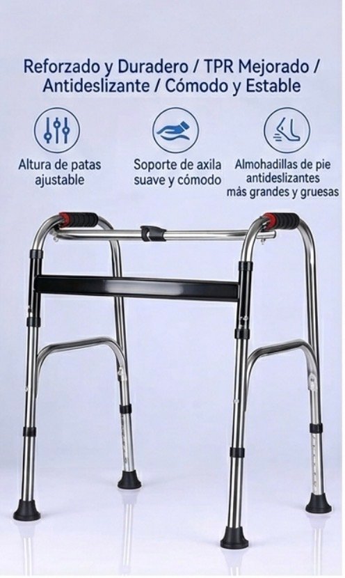 Base usada para optimización: la publicación de referencia indica andadera ortopédica plegable de aluminio, altura ajustable y soporte de hasta 100 kg.